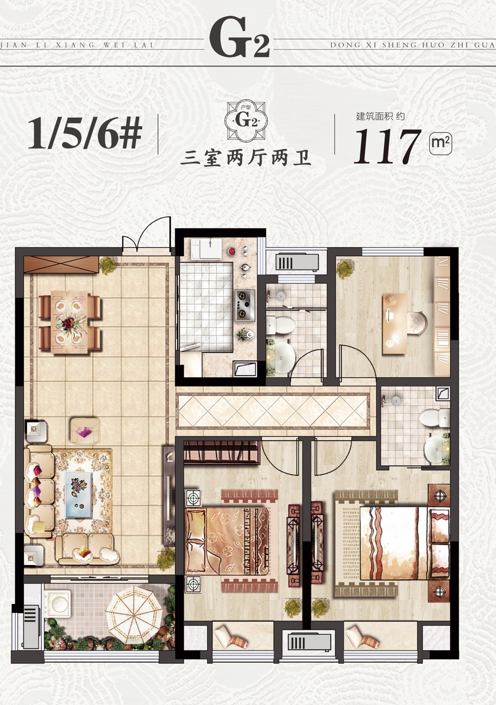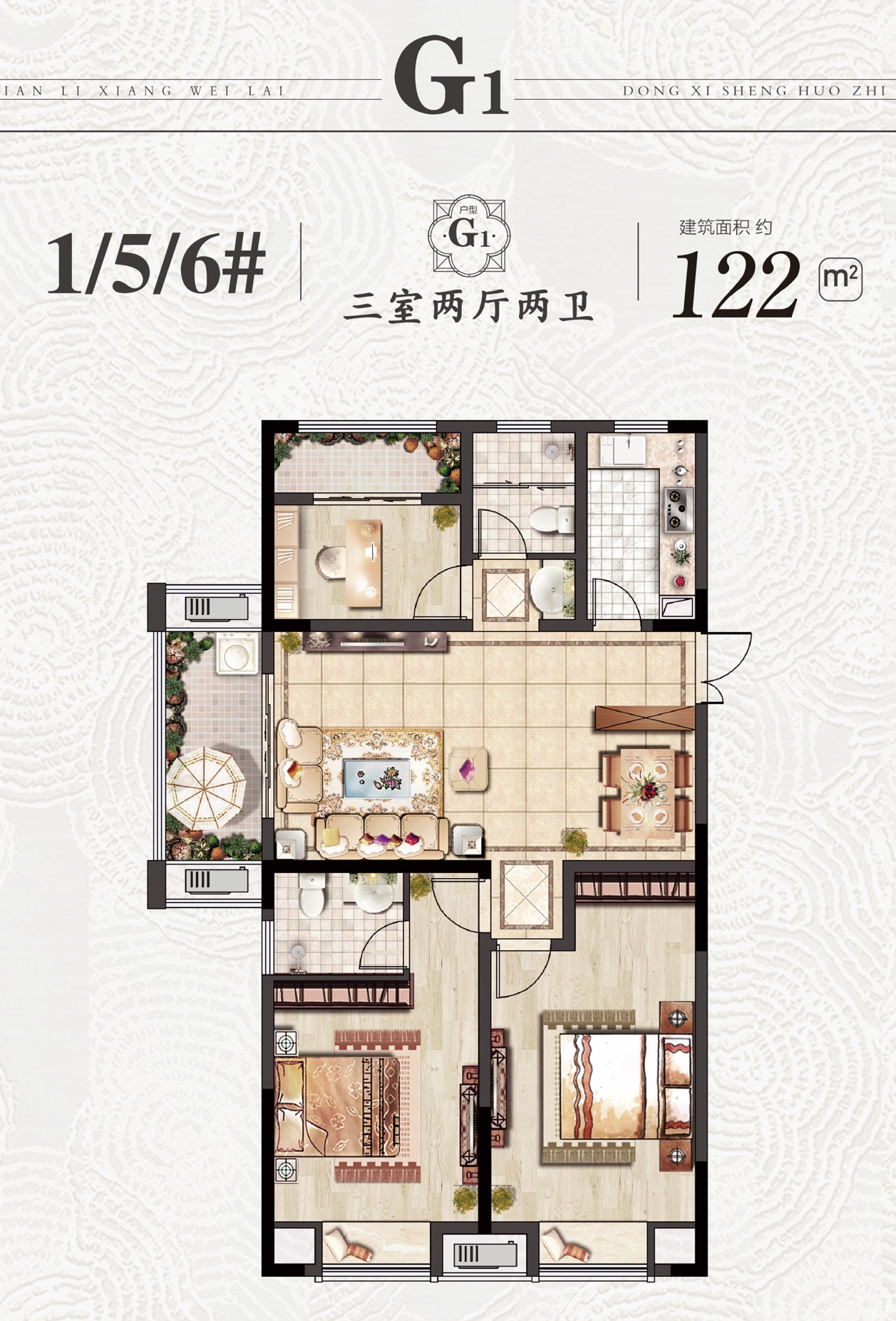 项目前期推出的是96平方米三室两厅两卫、及面积104-106平方米的三室两厅两位卫、116的三室两厅两卫和122平方米与124平方米三室两厅两卫141平方米的四室两厅两卫